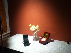 Here’s the scene lit with a brand-new LED bulb (color temperature a slightly cooler 3000K, but still called “warm white”). Contrast and shadows are sharper, scene is classier.