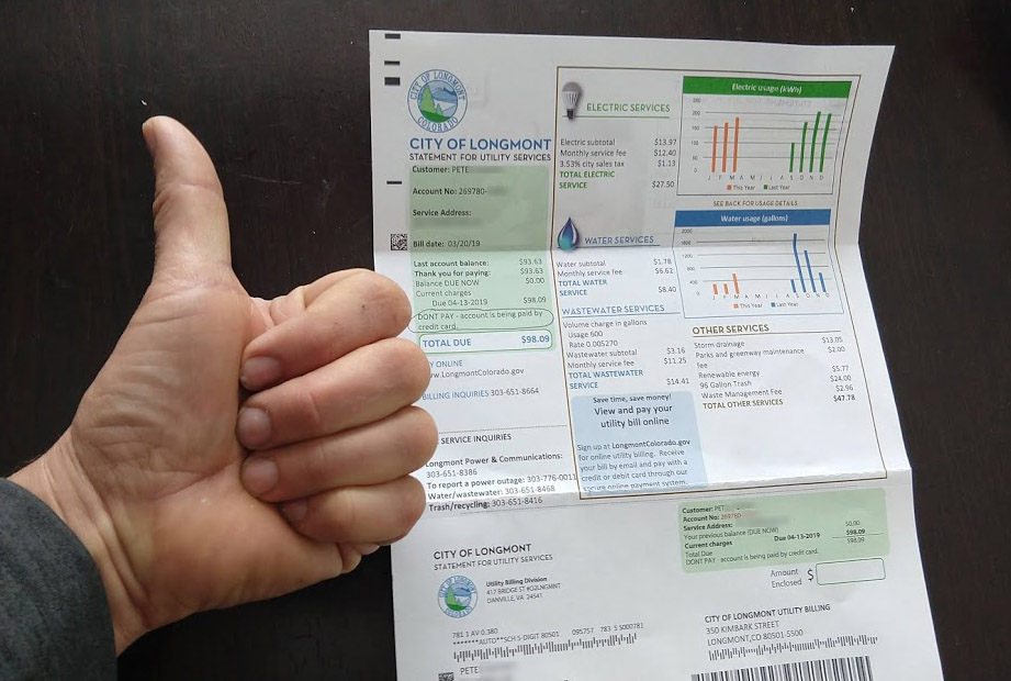 But this morning as I was looking at the latest one – a bill from the City of Longmont for all the various utilities, I noticed that the same familiar feeling crept across my chest that I had felt for all of these other expenses: a feeling of warmth and reassurance.