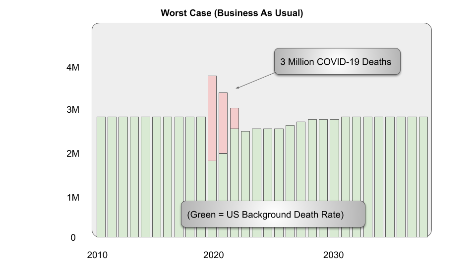 Also, for the purposes of this article I wanted to brace people for the high end of the government forecast and then contrast that against an even HIGHER number, and even that 3 million number is only equal to our background death rate.