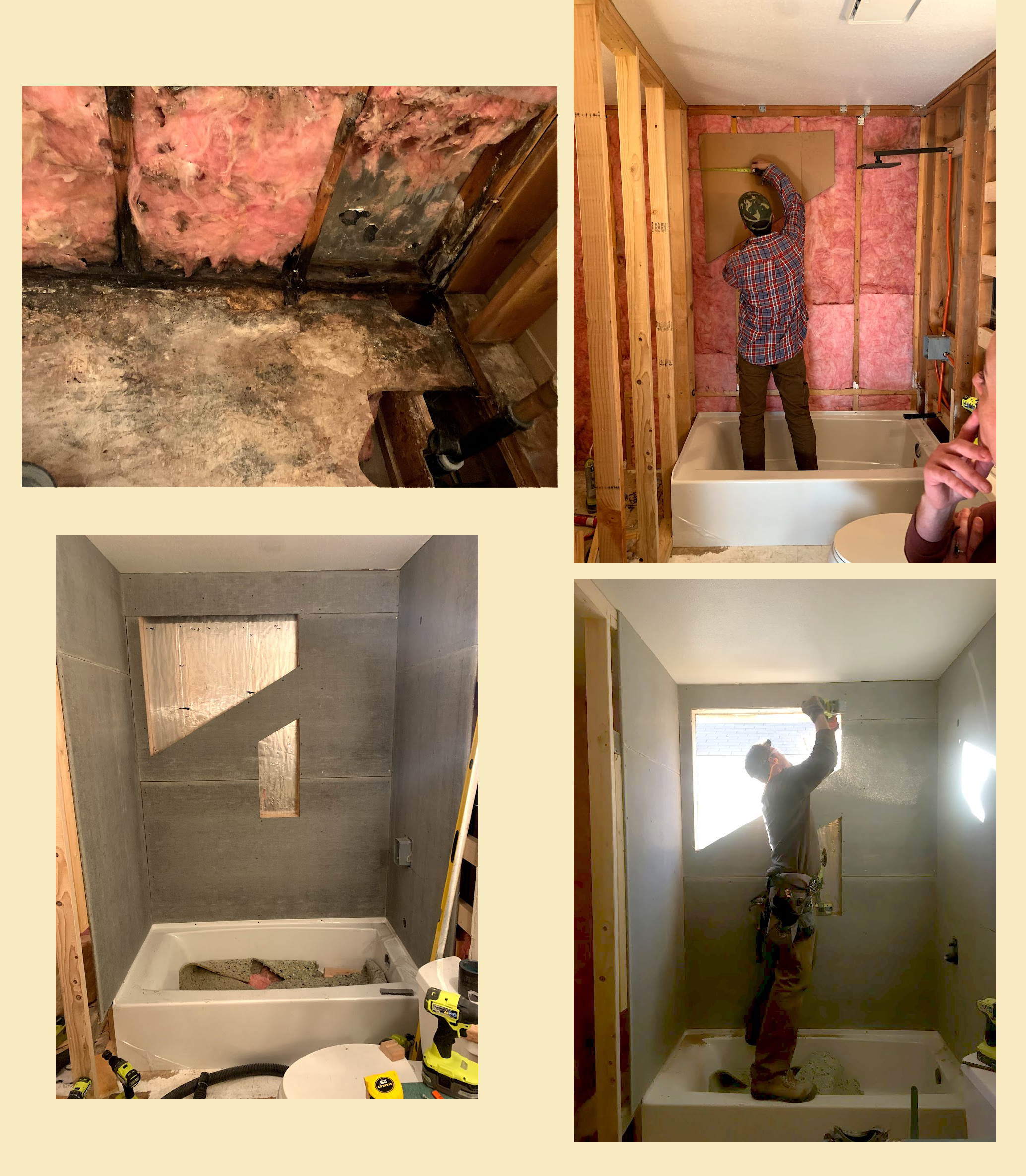 We found the previous shower had been leaking for years and creating the most interesting scene of decay. We tore out and rebuilt the whole area, and cut in a nice window for good measure.