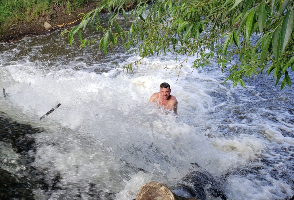 Unsuccessfully but Refreshingly trying to climb the local waterfall